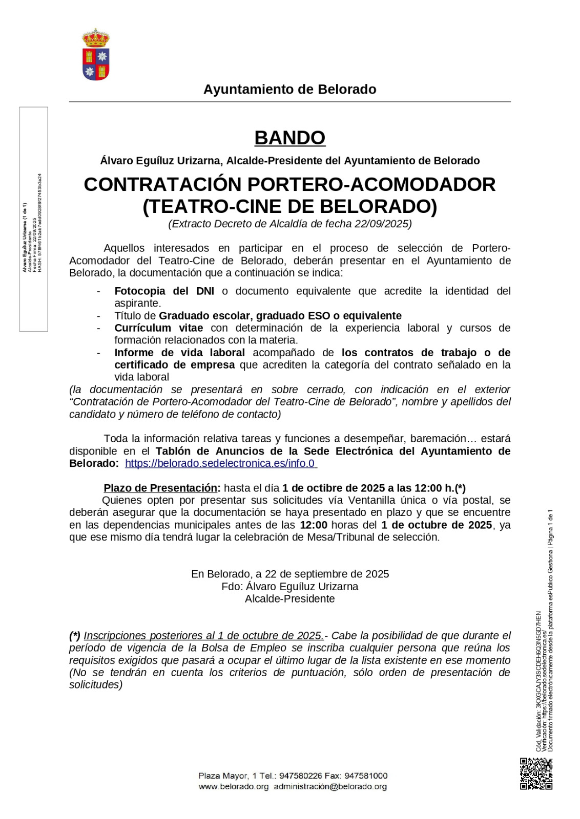 CONTRATACIÓN PORTERO - ACOMODADOR